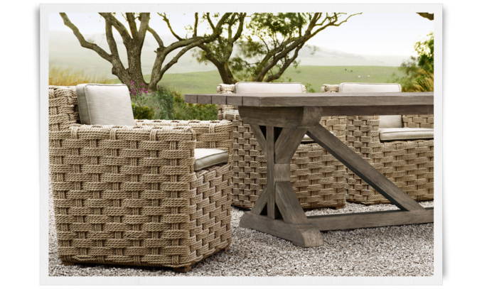 Grandin Road for rugs, outdoor furniture, planters and pillows.
